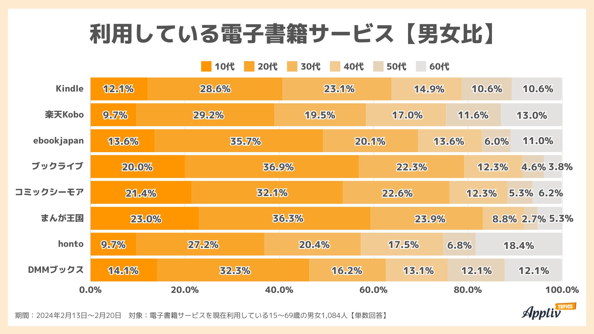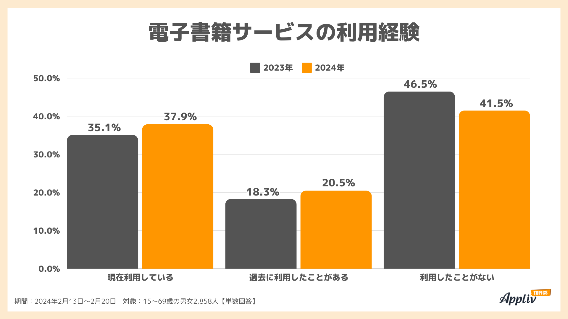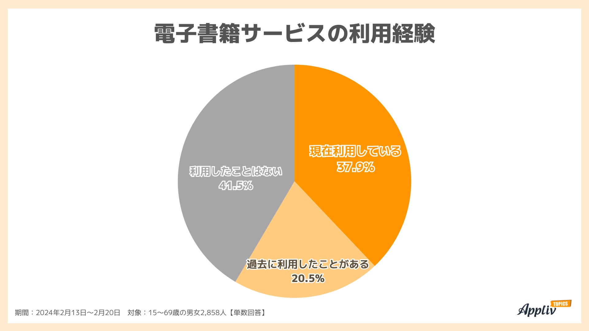 「Appliv TOPICS」は15~69歳男女2,858人を対象に、2024年2月13日~2月20の期間で、電子書籍サービスに関するアンケートを実施しました。