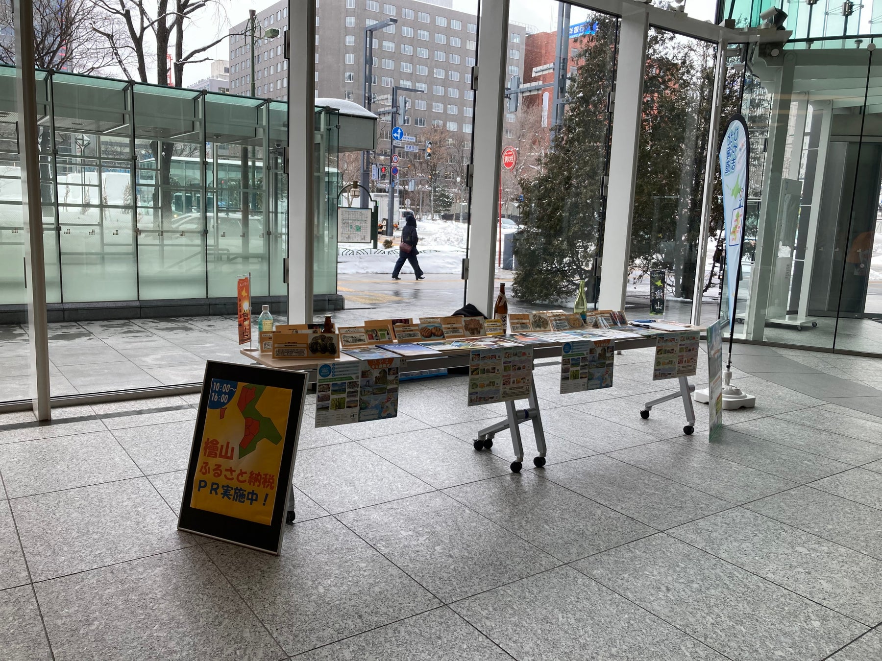 大通公園西3丁目に面した1階ロビーでは、檜山地域のふるさと納税と観光情報を掲載したパンフレットを配布し、ふるさと納税制度の活用方法や檜山の魅力などについてご紹介いたします。