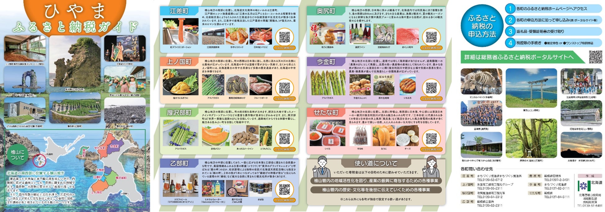 さらに、檜山振興局公式HPでは、各町のふるさと納税についてまとめたパンフレット2種を掲載するとともに、各町のふるさと納税に関するホームページをまとめてご紹介しておりますので、あわせてご覧ください。