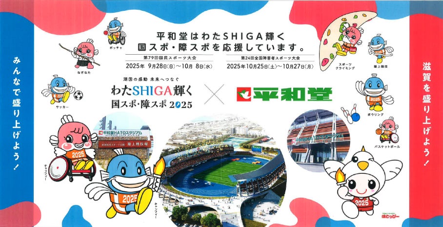 株式会社平和堂(本社:滋賀県彦根市、代表取締役社長執行役員CEO:平松 正嗣)は、滋賀県で44年ぶりに開催される「わたSHIGA輝く国スポ・障スポ(第79回国民スポーツ大会・第24回全国障害者スポーツ大会)」のJAPANGAMESパートナーとして、両大会の開催期間中、店舗のマイボトルスポット化や従業員のボランティア参加など、大会成功に向けたサポートを行います。