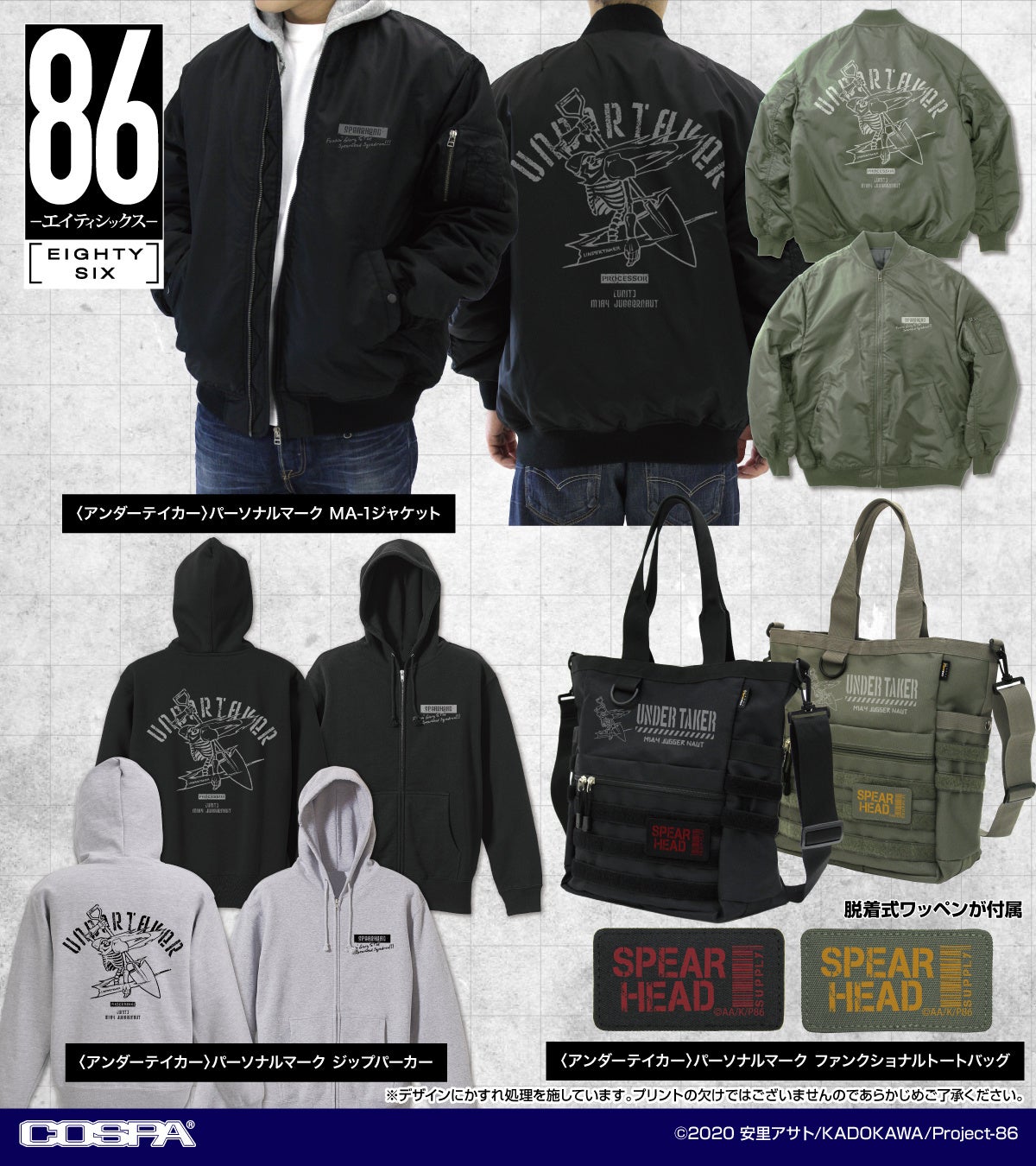 『86―エイティシックス―』劇中に登場する部隊スピアヘッド。その隊長シンエイ・ノウゼンのパーソナルネームである「アンダーテイカー」のマークをアパレル&トートバッグへデザイン。