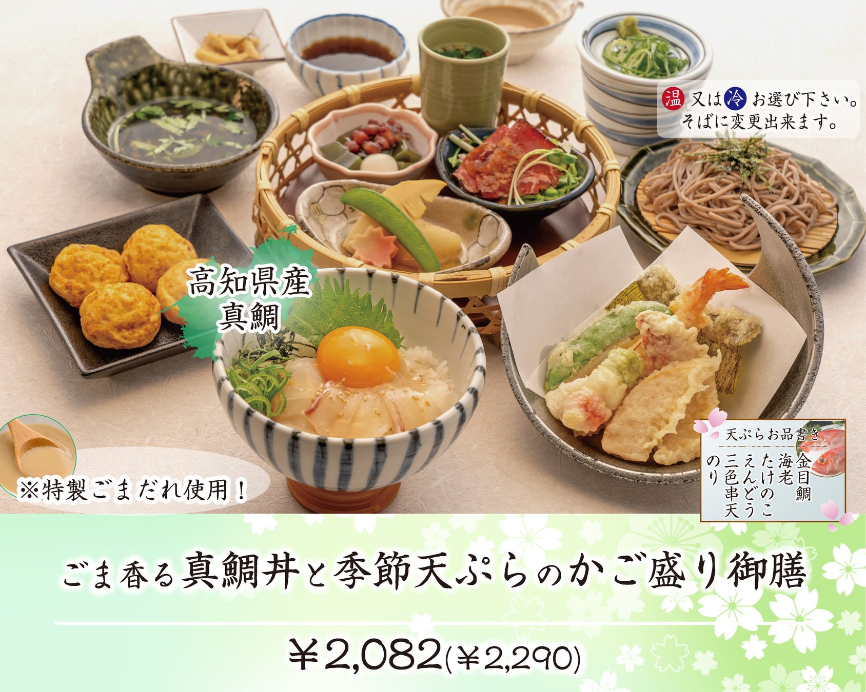 ・ごま香る真鯛丼と季節天ぷらのかご盛り御膳 2,028円(税込み2,290円)