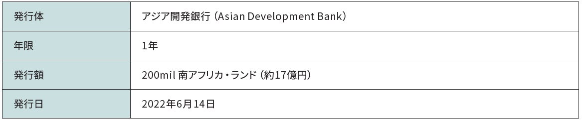 ソニー銀行株式会社(代表取締役社長:南 啓二/本社:東京都千代田区/以下 ソニー銀行)は、アジア開発銀行(正式名称:Asian Development Bank、以下 ADB)が発行するウォーター・ボンド(以下 本債券)への投資を実施しましたのでお知らせいたします。