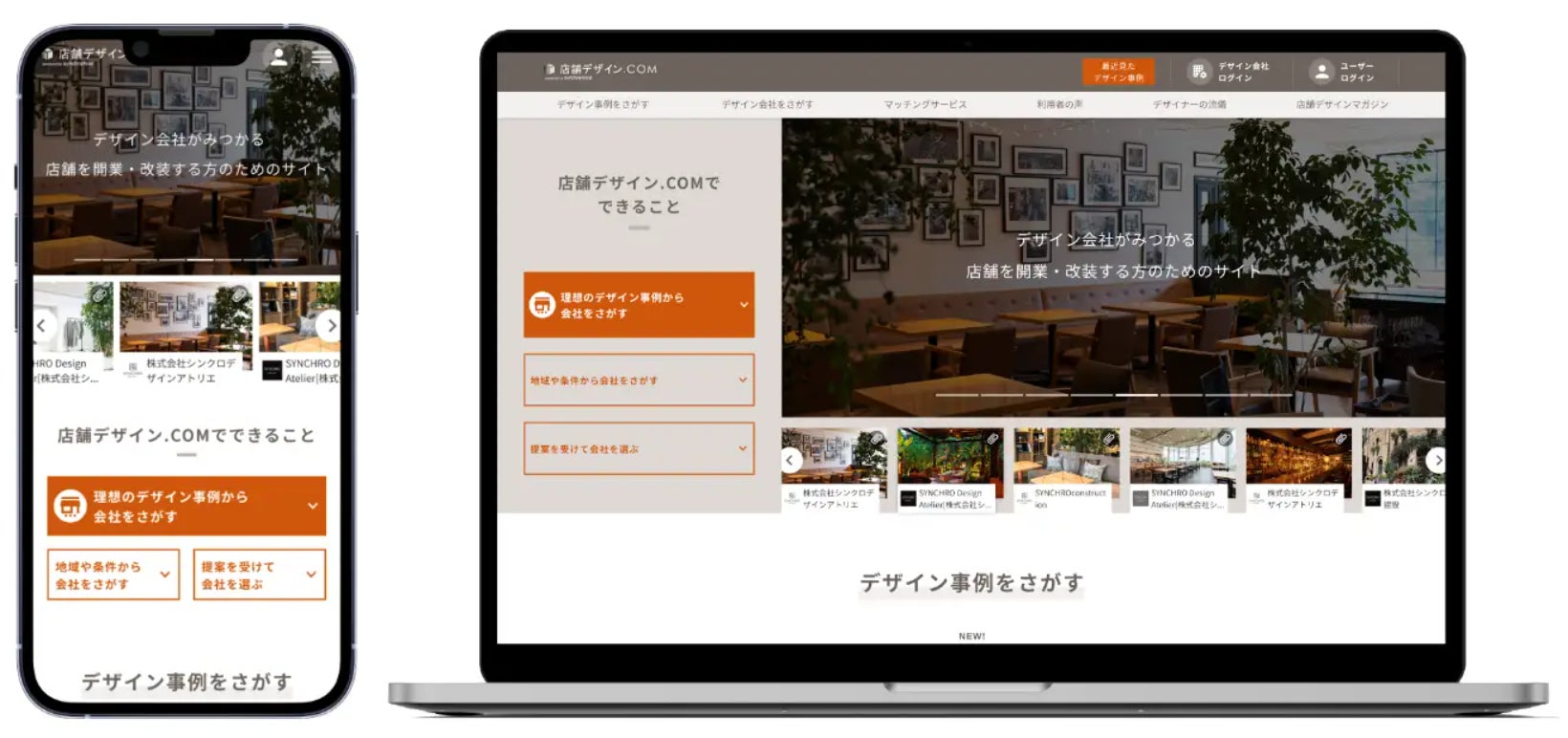 「事例」を見やすく・比べやすいUIに一新。理想の店舗イメージに合った会社探しができるように改善しました。