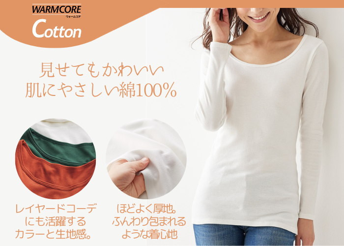 商品名:ウォームコアコットン 綿100%ロング丈長袖インナー2枚組