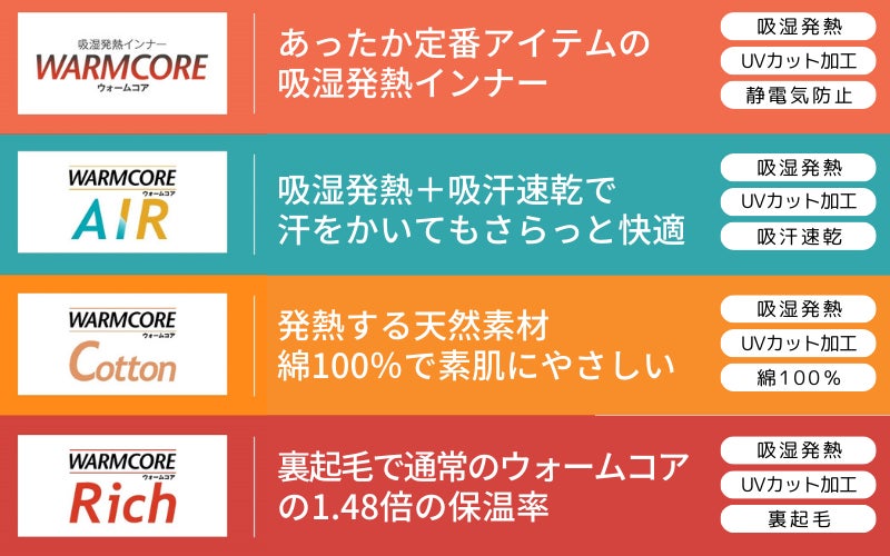 薄手でもあったか。定番の「WARMCORE(ウォームコア)」