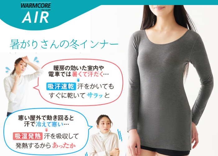 意外に汗をかく冬を快適に。吸汗速乾機能付きの「AIR(エアー)」