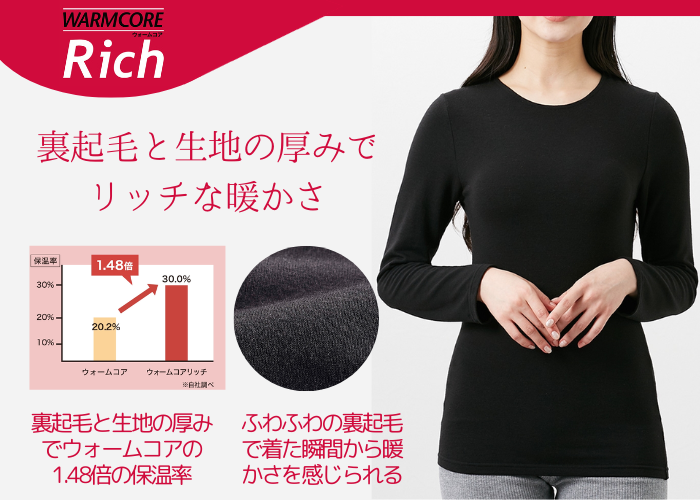 肉厚の裏起毛で保温率を1.48倍に高めた「Rich(リッチ)」