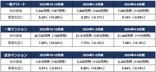 2024年4~6月期 投資用不動産の市場動向(不動産投資の「楽待」)