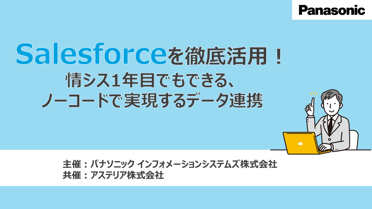パナソニック インフォメーションシステムズ株式会社は、2022年11月25日(金)から12月9日(金)にかけて計3回、『Salesforceとのデータ連携をノーコードで実現する手法』にフォーカスしたオンラインセミナーを開催します。