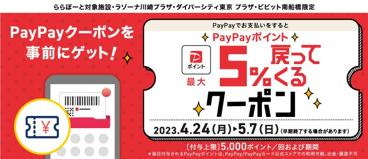 - PayPayでお支払いをするとPayPayポイント最大5%戻ってくるクーポン
