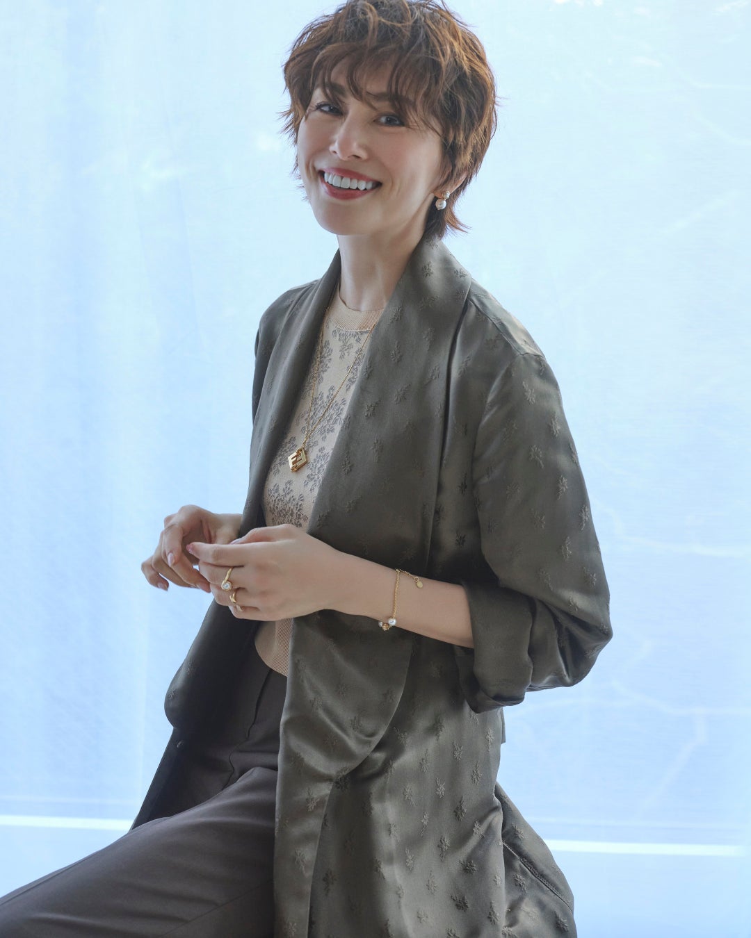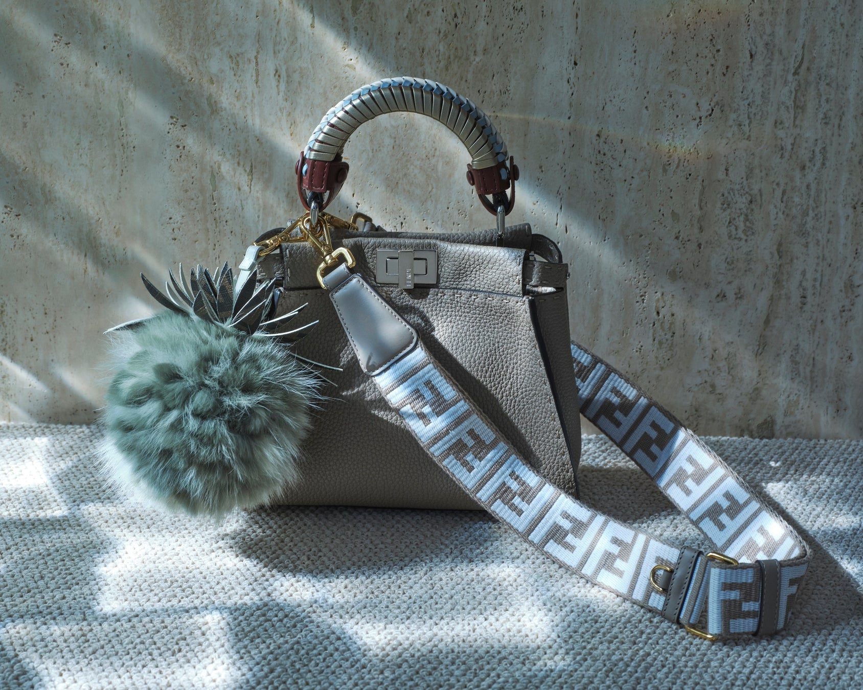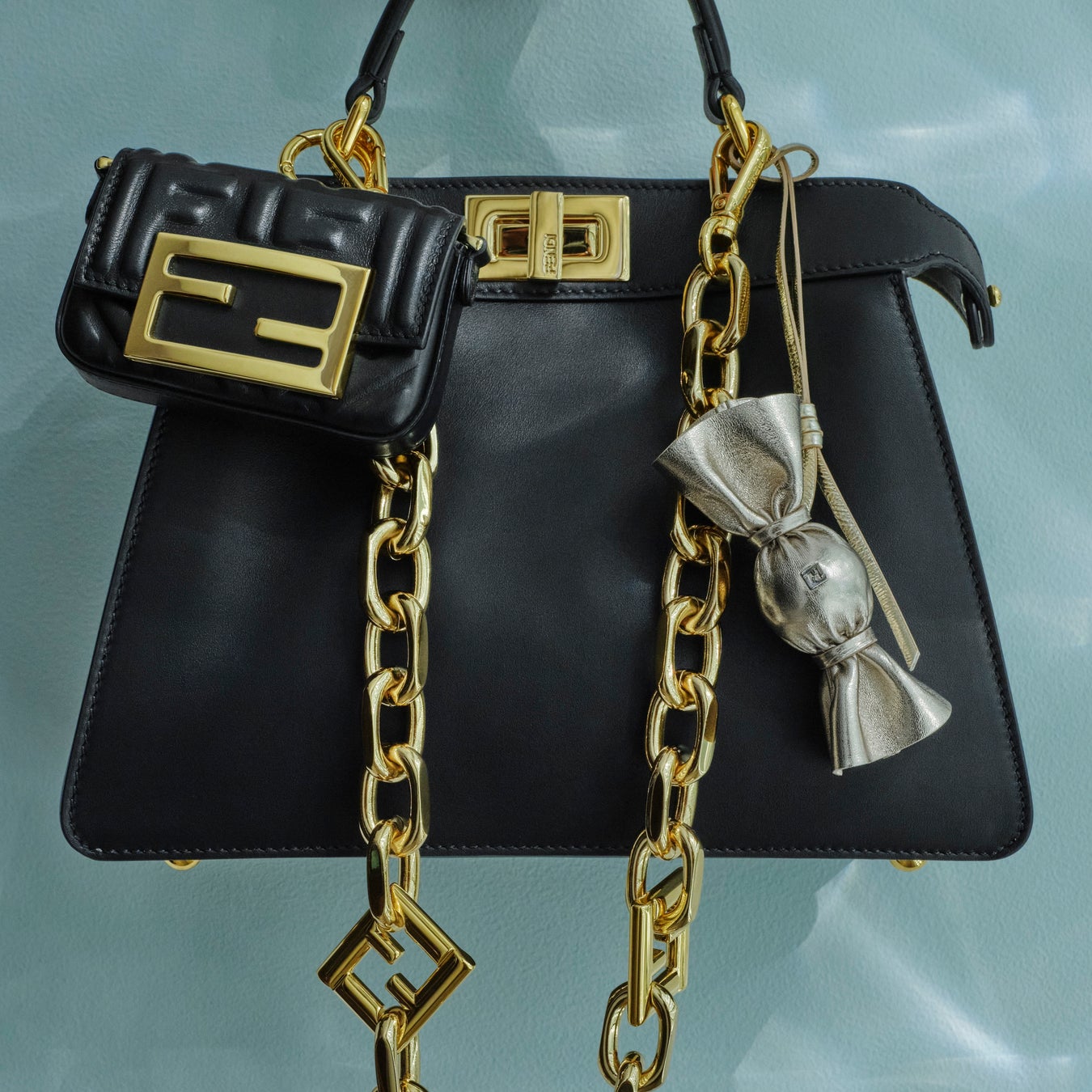 本編では、米倉涼子さんが「ピーカブー」に合わせた2つのスタイルを披露しています。1つ目は、デニムのセットアップに、アメリカのフットウェアブランド、「レッドウィング(Red Wing)」との共同制作による「フェンディ アンド レッドウィング(FENDI and RED WING)」ブーツを合わせたコーディネート。ダヴカラーの「ピーカブー ミニ(Peekaboo Mini)」に「ピーカブー」専用のハンドルと「FF」ロゴモチーフが施された「ストラップ ユー(Strap You)」、パイナップル型のチャームを取り付け、エレガントで軽やかなスタイルを完成させました。2つ目は、春らしいピンクカラーのジャガードニットにブラウンのテーラードパンツを合わせ、フローラルブーケの モチーフが施されたロングコートを羽織ったコーディネート。ブラックのアイコニックな「ピーカブー アイシーユー スモール(Peekaboo ISeeU Small)」に「ナノ バゲット(Nano Baguette)」、「フェンディ ソースイート チャーム(FENDI So Sweet Charm)」、「FF ダイアモンド(FF DIAMOND)」モチーフがあしらわれた「ストラップ ユー」を取り付け、遊び心のある大人なスタイルを披露しました。