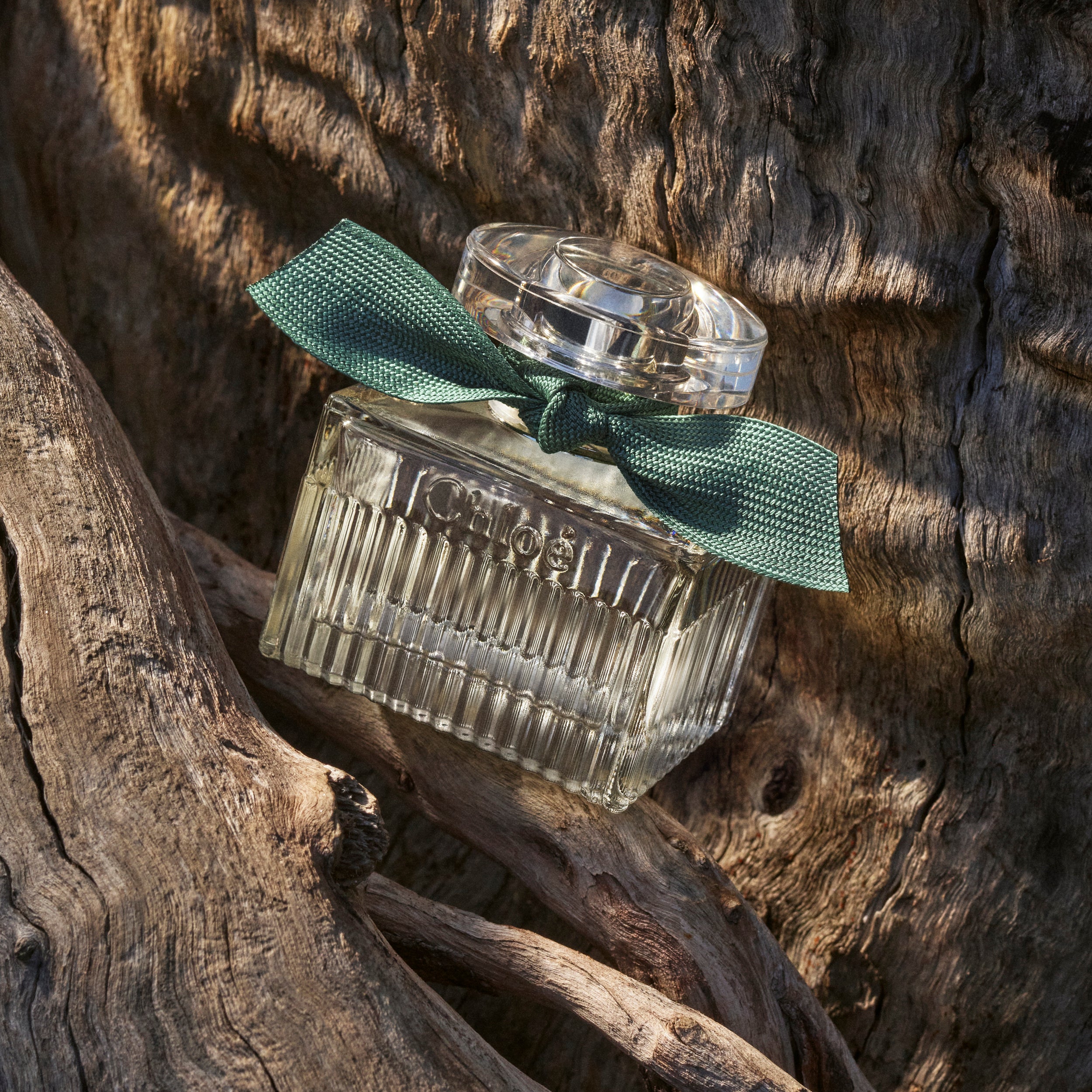 立体的なラインにフェミニンなリボン、そしてサンレイプリーツをイメージしたクロエのシグネチャーボトル。新作では、自然を象徴する緑の葉を彷彿とさせるグリーンのシンボリックなカラーリングが、リボンとボックスを彩ります。