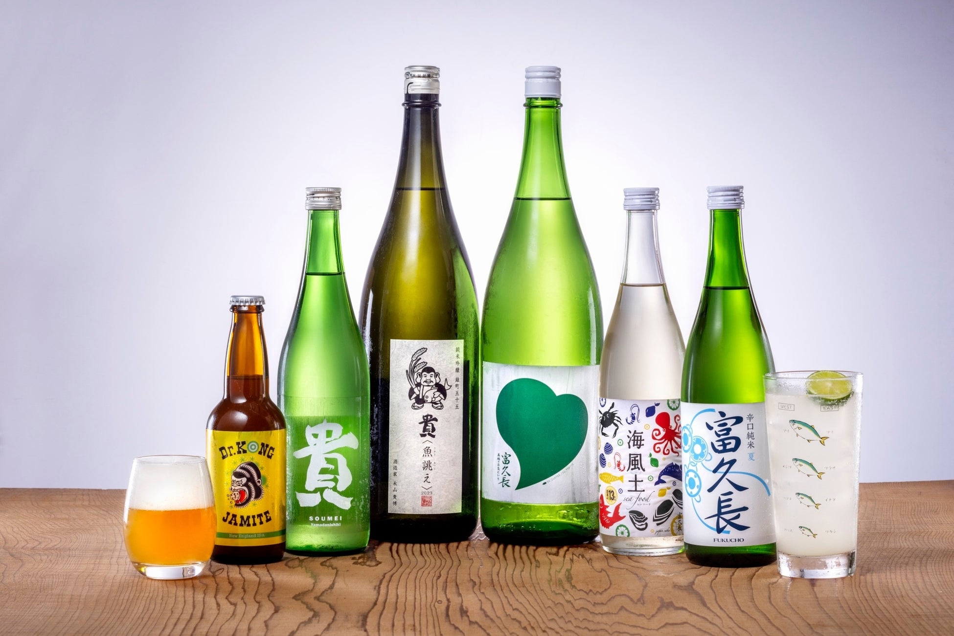 2人の実力派杜氏が四十八漁場のために醸すオリジナル日本酒「富久長 美穂のお気に入り/広島(一杯680円~)」と「貴 魚誂え/山口(一杯680円~)」」をはじめ、それぞれの蔵元からとどく夏限定の日本酒や、徳島産のすだち果汁を使った爽やかな「生絞りすだちサワー(550円)」など、すっきりとした味わいの夏酒やのど越しのよい日本酒ハイボールなど、料理の旨みを引き立たせるお酒をご用意しました。