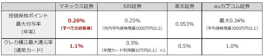 ポイント付与率0.26%は、クレカ積立サービスを提供しているネット証券の中では最大(※1)です。