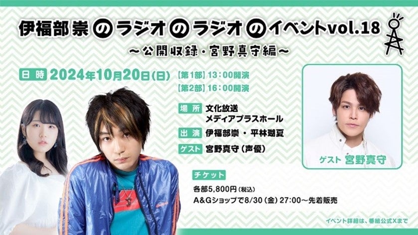 なお、イベントの詳細は番組公式Xでお知らせするほか、チケットは8月30日(金)27時00分から文化放送A&Gショップで先着販売を開始します。
