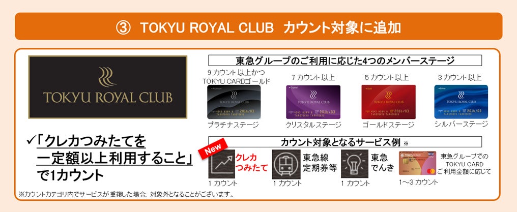 ③クレカつみたてをTOKYU ROYAL CLUBのカウント対象に追加し、TOKYU ROYAL CLUB会員に特典を提供(予定)