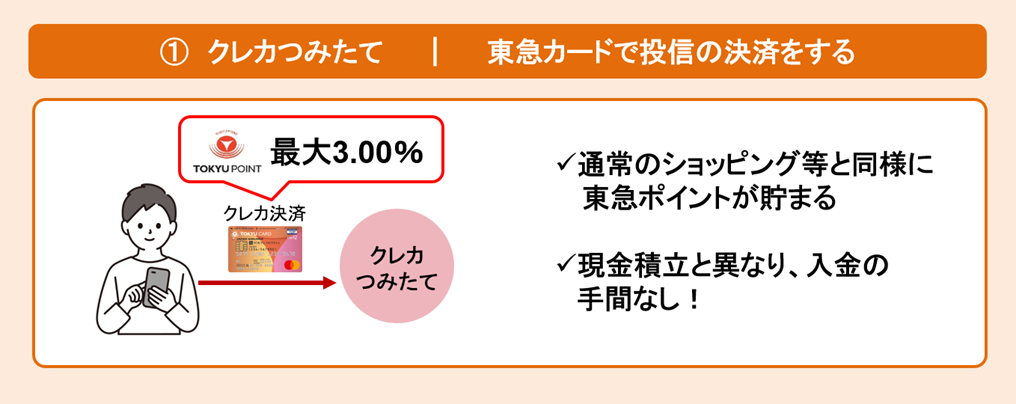 ①クレカつみたて(決済金額の最大3.00%分の東急ポイント※3を加算)