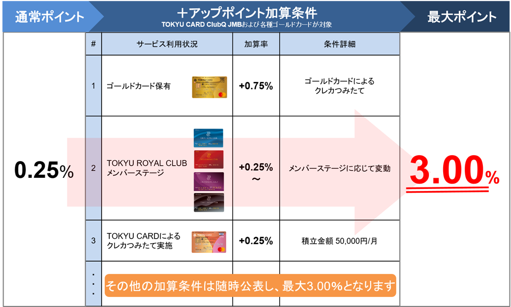 ※3 通常時のポイント加算率0.25%に東急グループのサービス利用状況により加算率がプラスされます。
