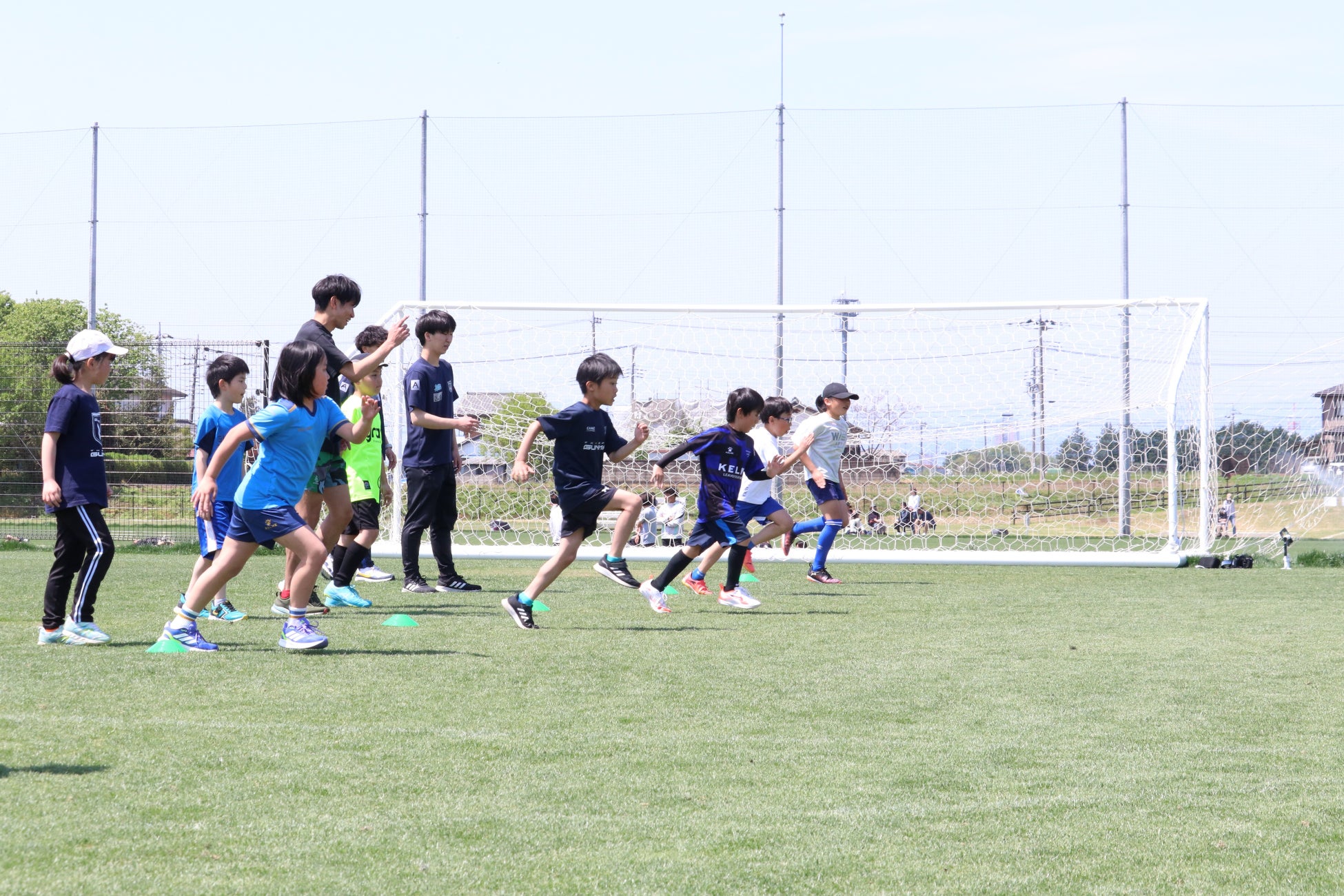 準備運動では、ザスパ群馬でU-12コーチを務める柴田 純さんがサッカーボールを使った体操を指導。楽しみながらも真剣に取り組む子どもたちの額には、うっすら汗がにじんでいました。