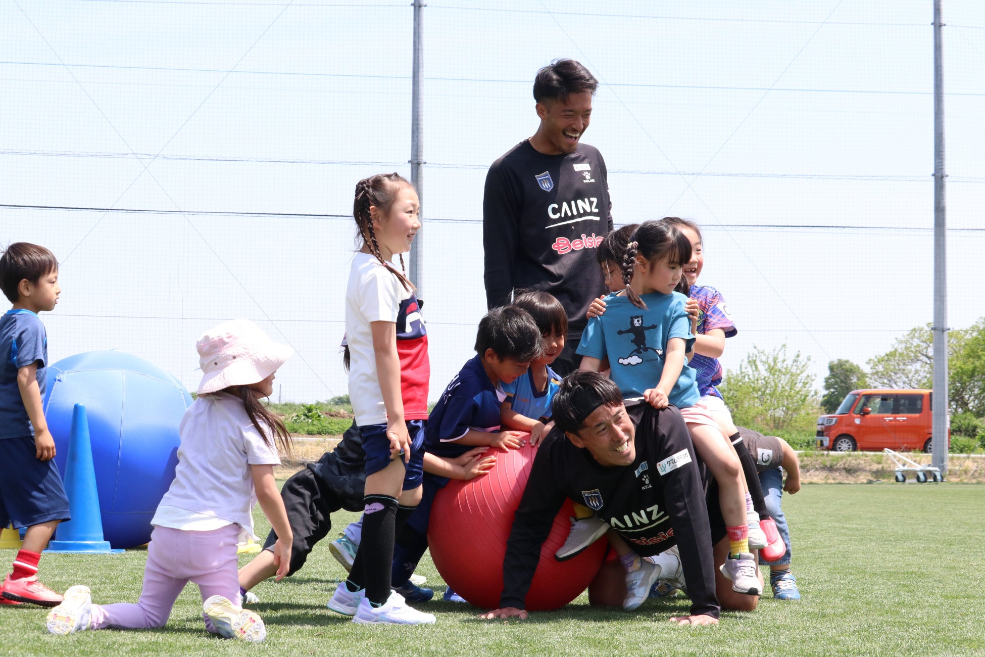 ザスパ群馬からは社長の細貝さんを筆頭に、トップチームの選手たちと、ザスパ群馬クラブアンバサダーの清水慶記さんが参加。それぞれのプログラムに加わり、子どもたちと交流を深めました。