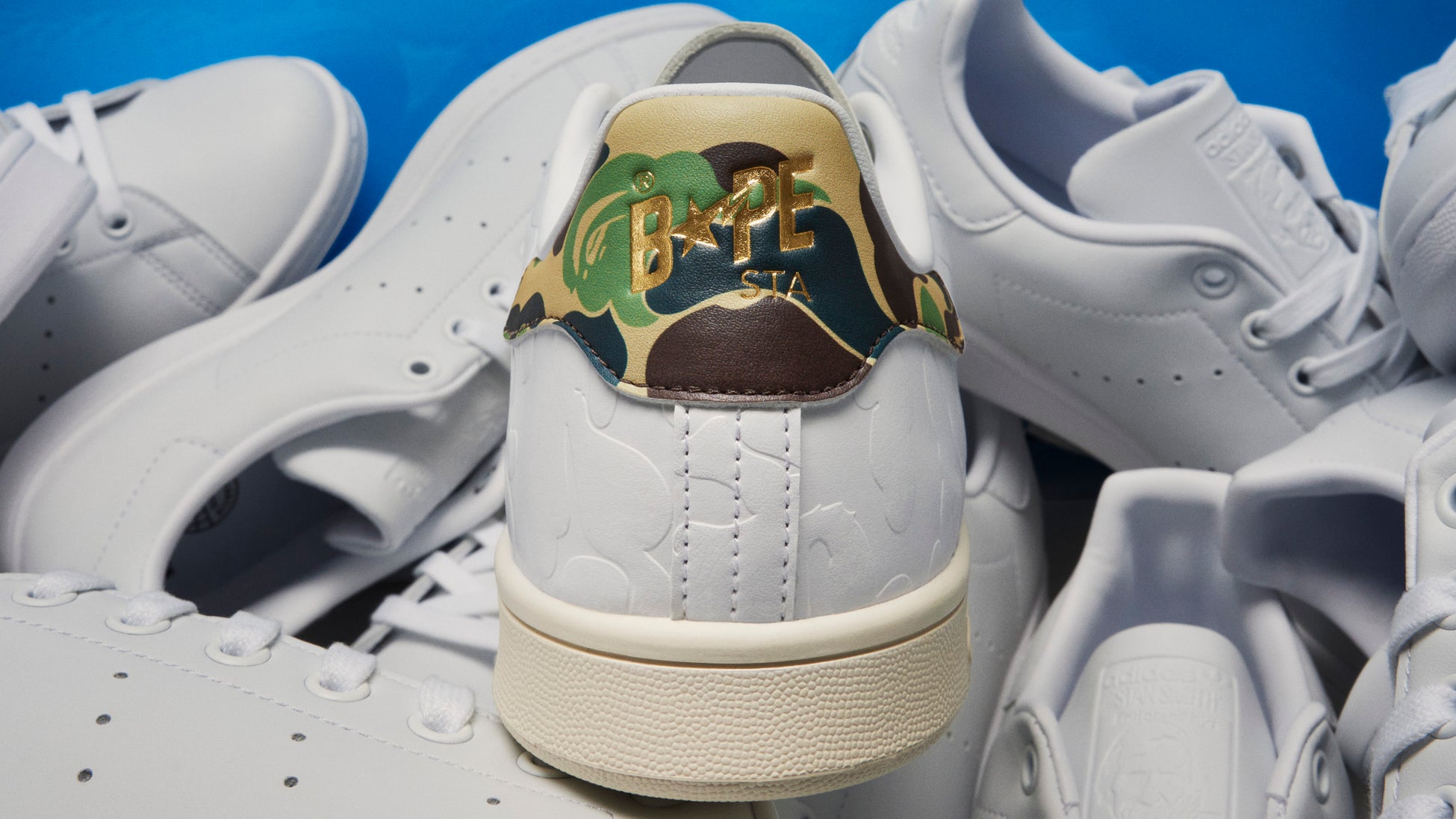 A BATHING APE®︎はadidas Originalsとのパートナーシップ20周年をセレブレイトするプロジェクトを一年に渡り展開し、BAPE®︎の30周年を記念してアディダス オリジナルスのクラシックスニーカーであるStan SmithをBAPE®︎のスタイルで再解釈した「Stan Smith BAPE®︎」が満を持して登場します。