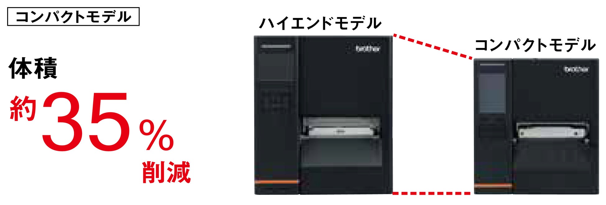 従来機種【※1】と比較して、体積を35%削減し、省スペースを実現した。コンパクトでありながら、最大で8インチ外径ロールのラベルや450m巻インクリボンに対応している。