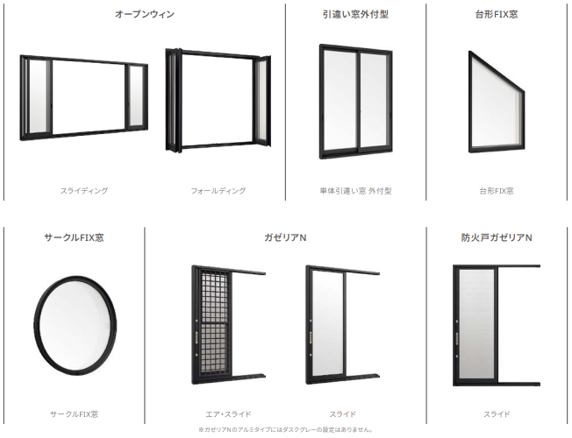 コーディネート窓を使用した住宅でもTOSTEMの主要サッシと合わせダスクグレー色のサッシで外観を統一することが可能に