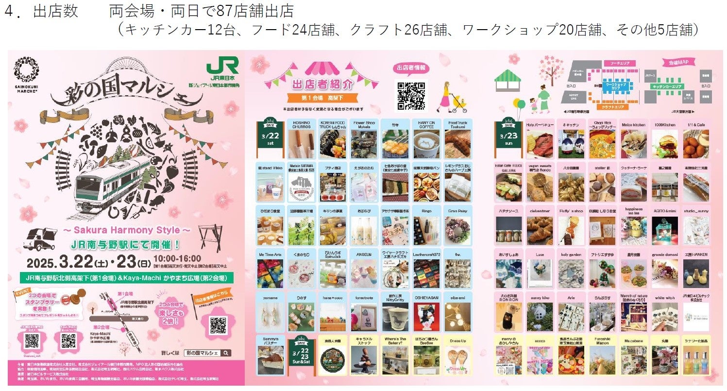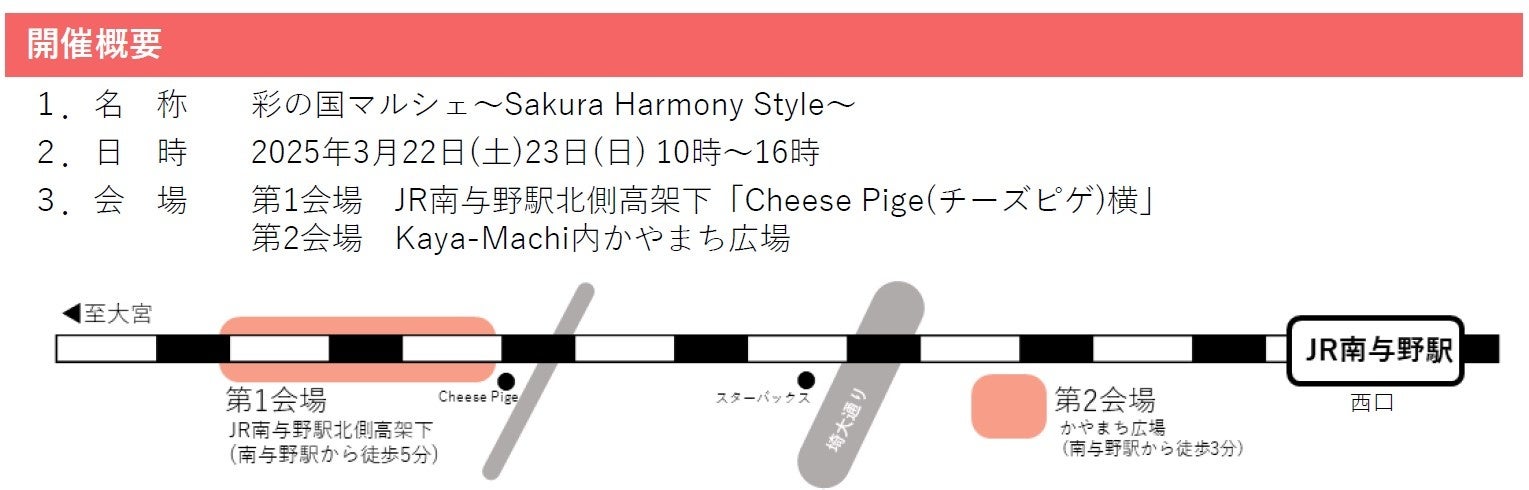 株式会社ジェイアール東日本都市開発は、2025年3月22日(土)、23日(日)に地域連携マルシェ「彩の国マルシェ~Sakura Harmony Style~」を開催します。