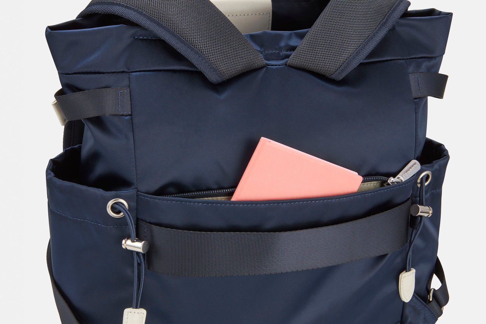 中身が一目でわかるメッシュポケットや、ペットボトルや折り畳み傘を差し込めるボトルホルダー、すぐに取り出したい小物の収納に適したサイドポケットといった、用途に合わせて使い分けられるポケットを多数配置しました。