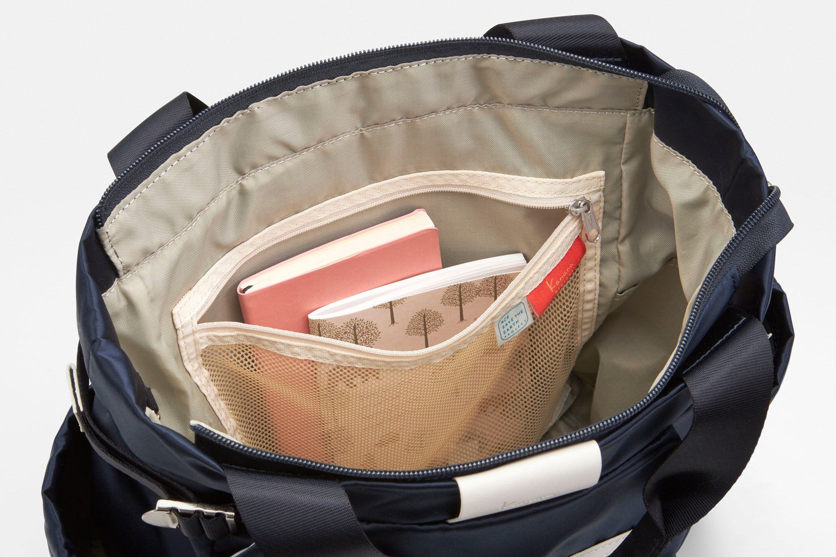 また、薄暗い場所でも中が見やすいよう明るいベージュの内装生地を使用しています。
