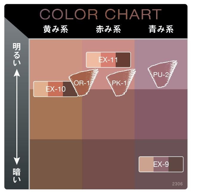 ●濃すぎず、薄すぎない、ちょうど良い発色で、自然な陰影感を演出。●肌に密着するのにふんわり仕上がる粉質。程よいつき具合になるよう調整されているので、