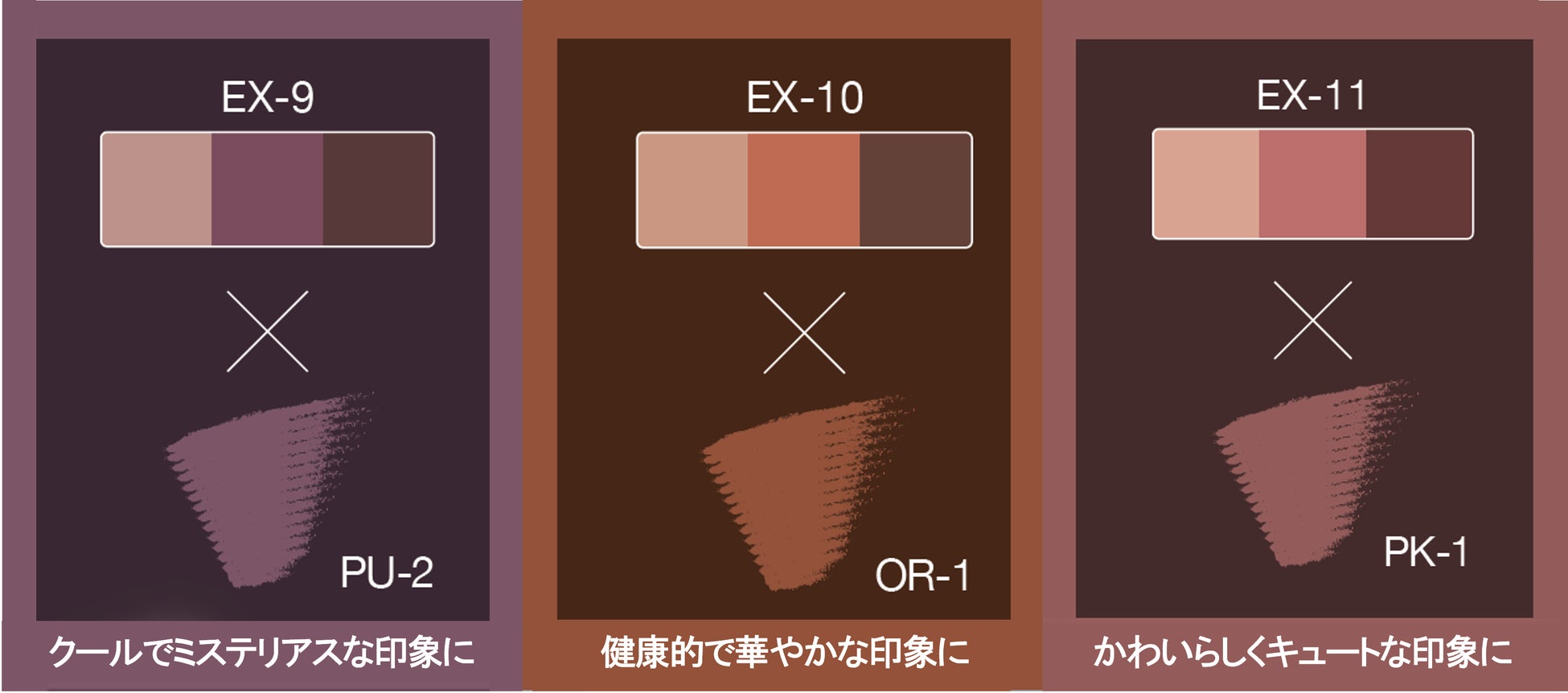 ●自然な立体グラデ眉に仕上がる、濃中淡の絶妙バランスの3色を配色。