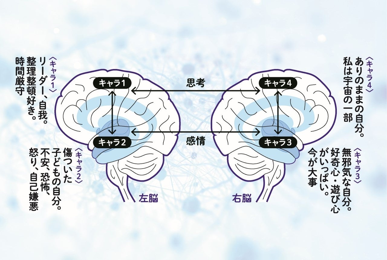情報を処理する方法や感じ方が正反対な、〈4つのキャラ〉があるからこそ、私たちはバランスの取れた心理状態を保つことができています。ところが、どれかひとつのキャラだけがいつも優位に反応する脳の伝達回路が発達してしまうと、どんな状況にあってもワンパターンの考え方や感じ方に偏ってしまい、それがその人のもつ価値観や人間関係に大きく影響します。