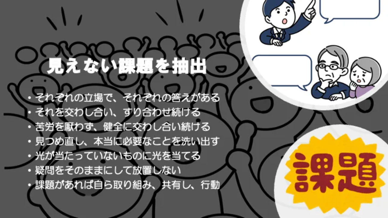 そして、受け止め、実際にどうやったら納得感があるのか、を個人個人の方々が考えるまでのプロセスを作りたいと考えています。