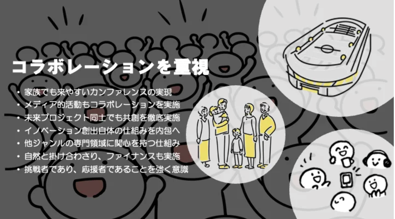 未来プロジェクトでは、さまざま事業アイデアとプロジェクトが推し進められています。それぞれの領域のプロフェッショナルの方と、共に事業推進していきたい、そうした思いを持っている方々と共に、作り上げることを大切にしています。