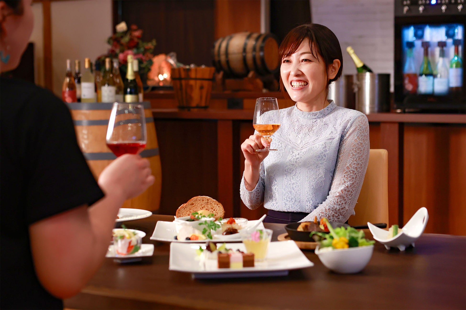 山梨ワインと美肌の湯を楽しめる「大江戸温泉物語 ホテル新光」は、大江戸温泉物語グループのなかでも唯一ワインに特化した飲み放題を実施(有料)。お花見を楽しんだあとは、季節ごとに替わる山梨ワインをぜひご堪能ください。