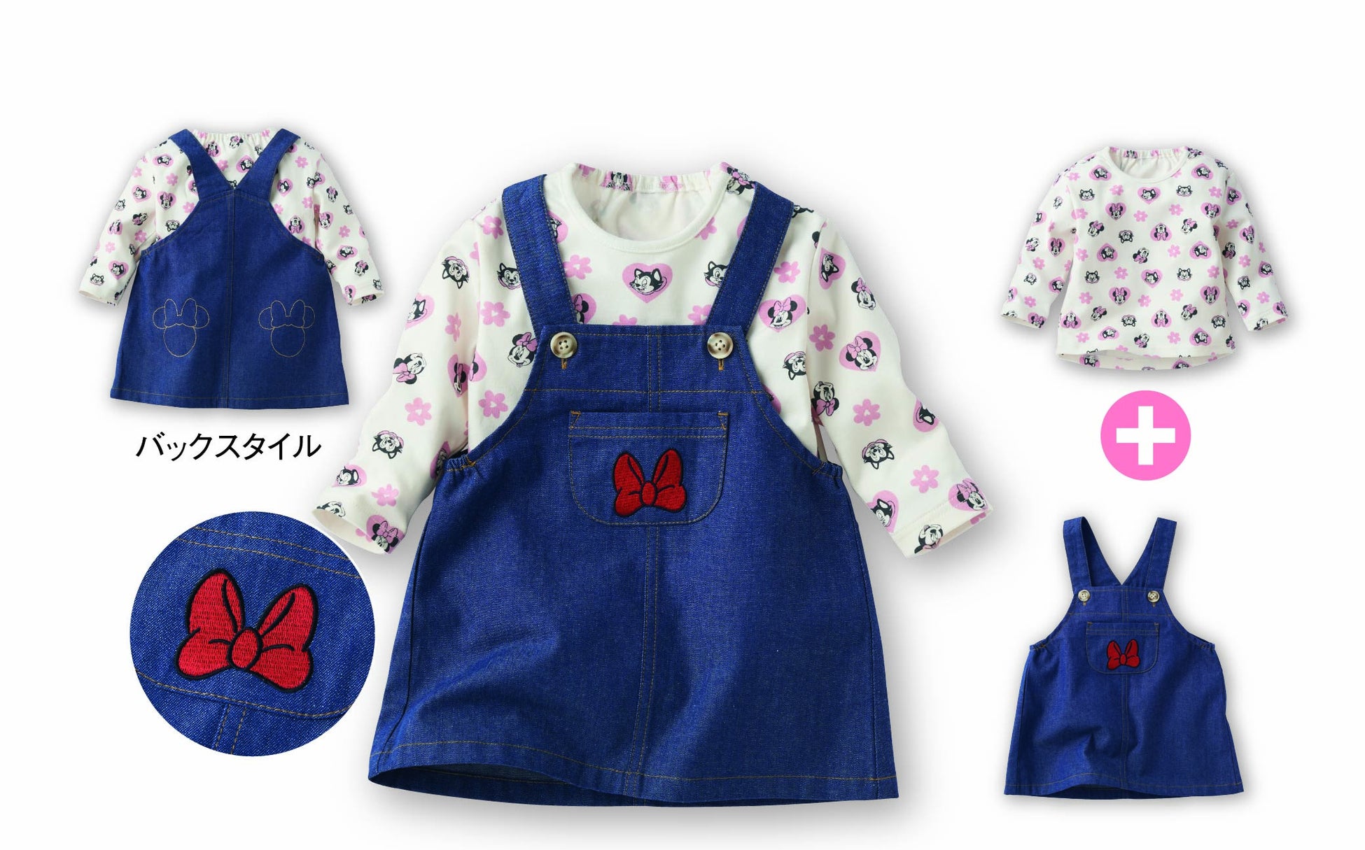 刺しゅうがアクセントのオーバーオール、ジャンスカとTシャツのセット。