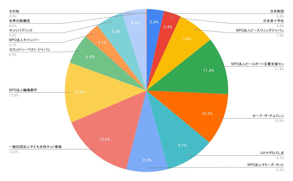 ・【日本財団】投票数:12件、割合:3.43%、支援金額:80,366円