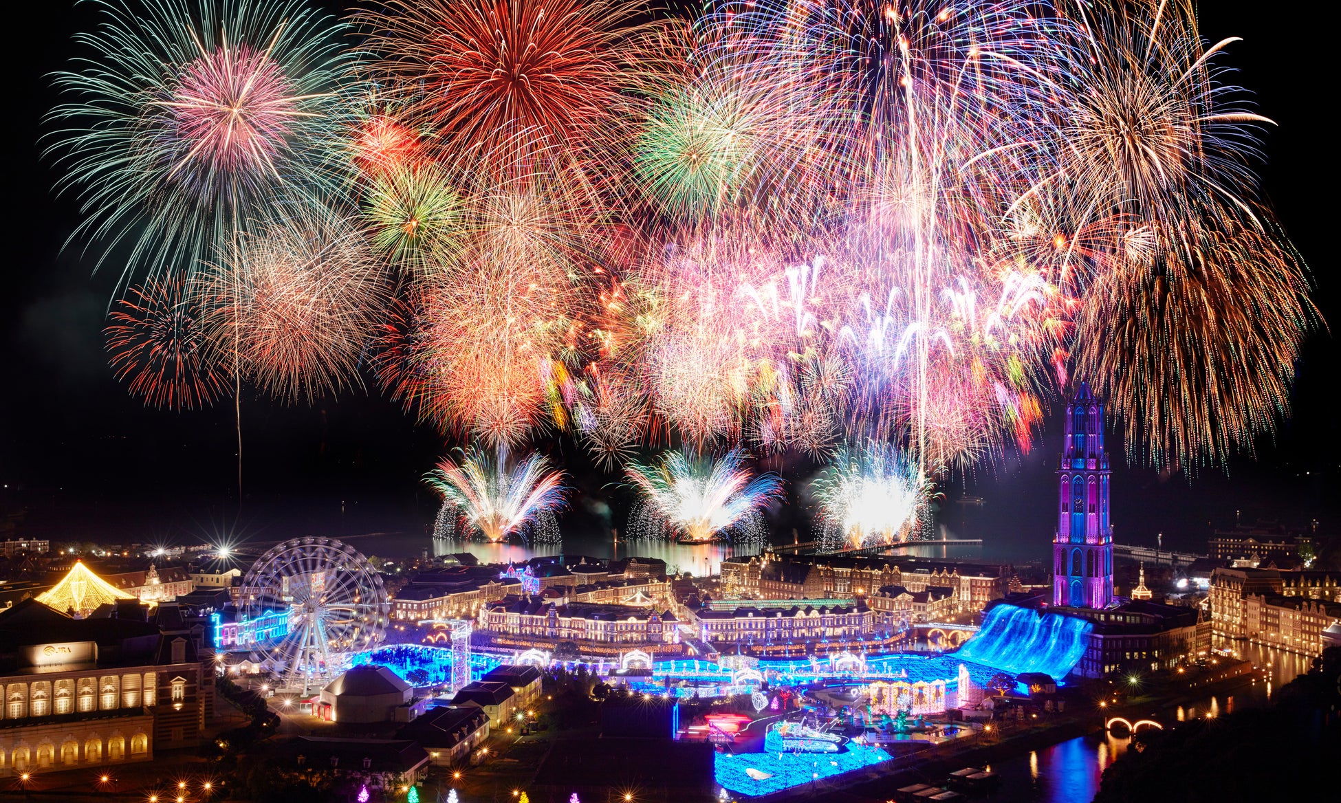 秋のヨーロッパの街並みに西日本最大級22,000発の花火が夜空に咲き誇る、この日だけの絶景を大切な人とごゆっくりお楽しみください。