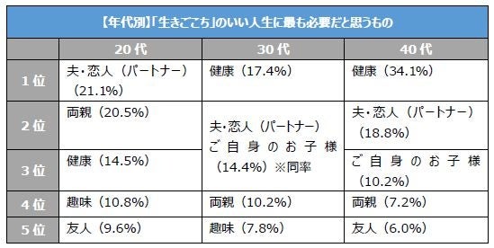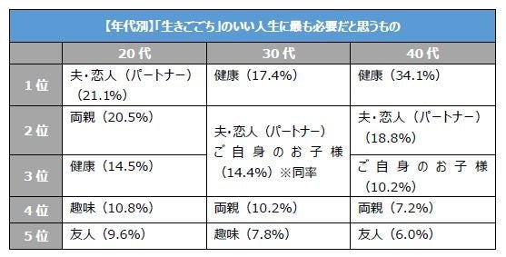 「生きごこち」のいい人生に最も必要なものは、20代はパートナーの存在がもっとも大きい結果に。