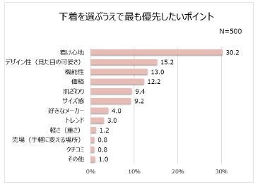3.日々肌に触れるパートナー、下着選びの優先ポイント1位は「着け心地」と3割以上が回答。