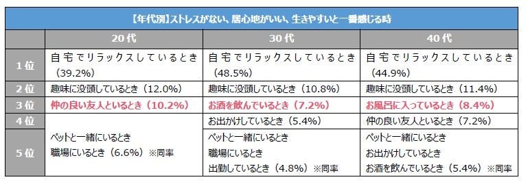 2. ストレスがない・居心地がいい・生きやすいと感じるのは「自宅でリラックスしているとき」が4割以上。