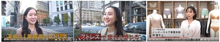 「働く女性の暮らしと下着選びに関する調査」で明らかとなった、働く女性のストレス実態、コンセプトムービーを視聴した感想を聞く街頭インタビューと、グンゼのブランド担当によるインタビューを収めた動画を3月24日(金)より公開いたします。ぜひ、こちらの動画もご視聴ください。