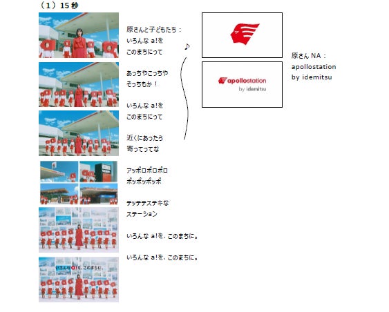 当社は全国に展開する約6,000カ所の「apollostation」を重要なインフラ網として維持・活用するため、従来の給油所としてだけでなく、それぞれの地域のニーズに応じて多様なサービスを提供する“生活支援基地”として進化させる取り組みを行っています。取り組みのスローガンとして「いろんなa!(あ!)を、このまちに。」を掲げており、今回の新TVCMでは、「いろんなa!を、このまちに。」というスローガンを、原さんと10名の子ども合唱団によるユニークなパフォーマンスで表現しました。