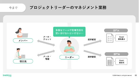 ヌーラボは、プロジェクト管理ツール「Backlog」、オンライン作図ツール「Cacoo」、組織の情報セキュリティ・ガバナンスを高めるための「Nulab Pass」を開発・提供しています。