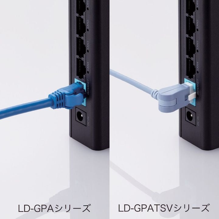 パソコンやルーターから出っ張らずにスッキリ!柔軟に角度調整できるカテゴリー6A準拠の縦・横2タイプのスイング式LANケーブルを新発売