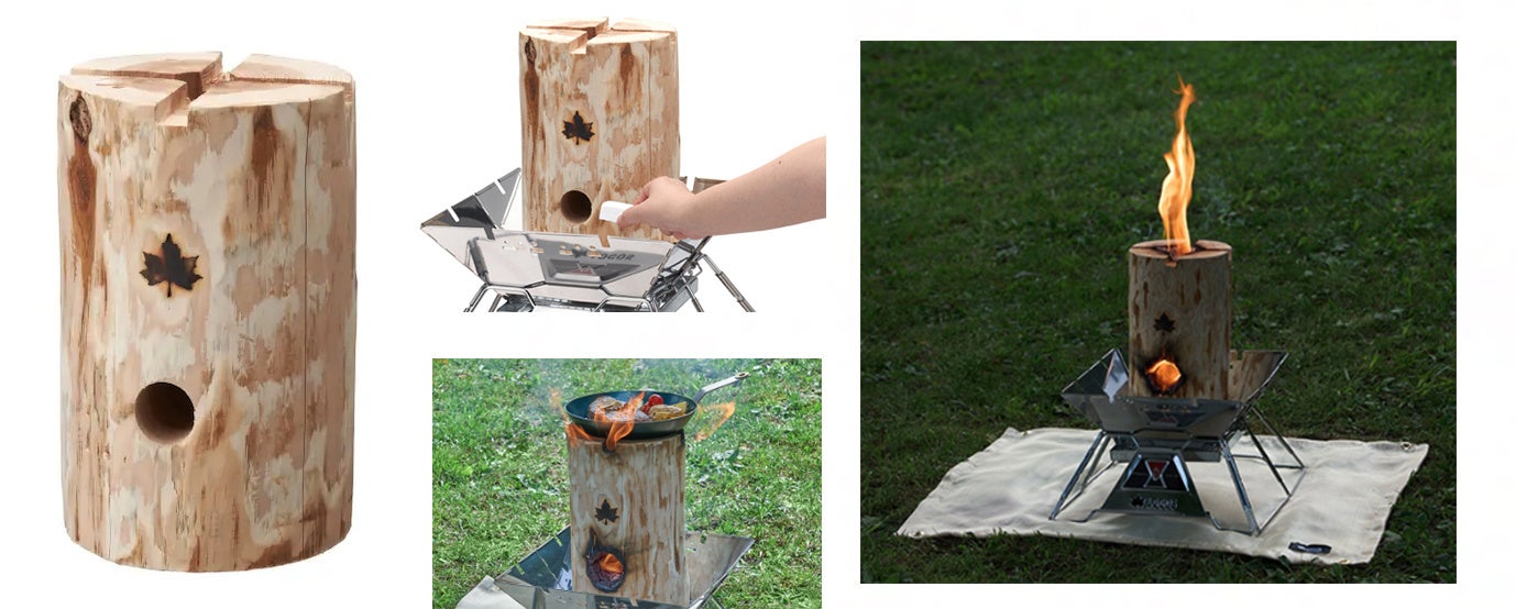 強制乾燥を施した国産杉の間伐材を使用し環境にも配慮しているほか、風に強いロケットストーブ型なので燃焼時間が約1.5時間と長いので、たっぷりたき火が楽しめる。