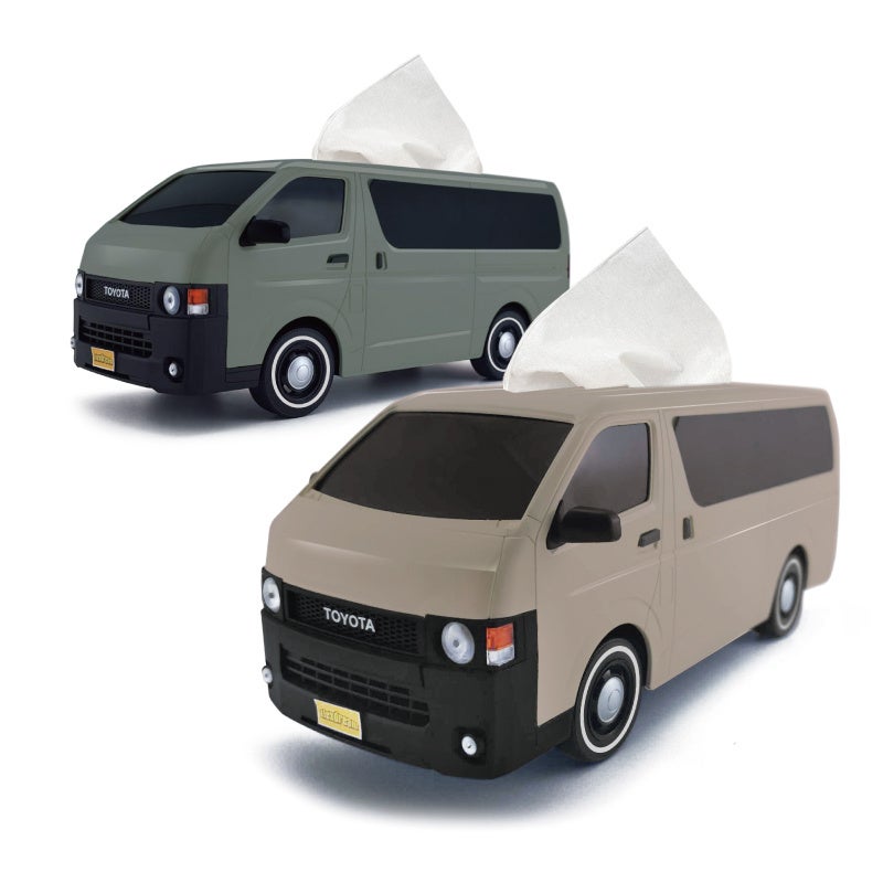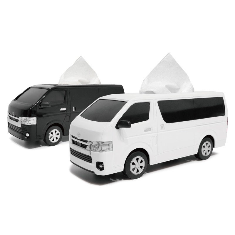 まるでミニカーの見た目のティッシュケースは、JAFバージョンのハイエース車両を再現したものです。
