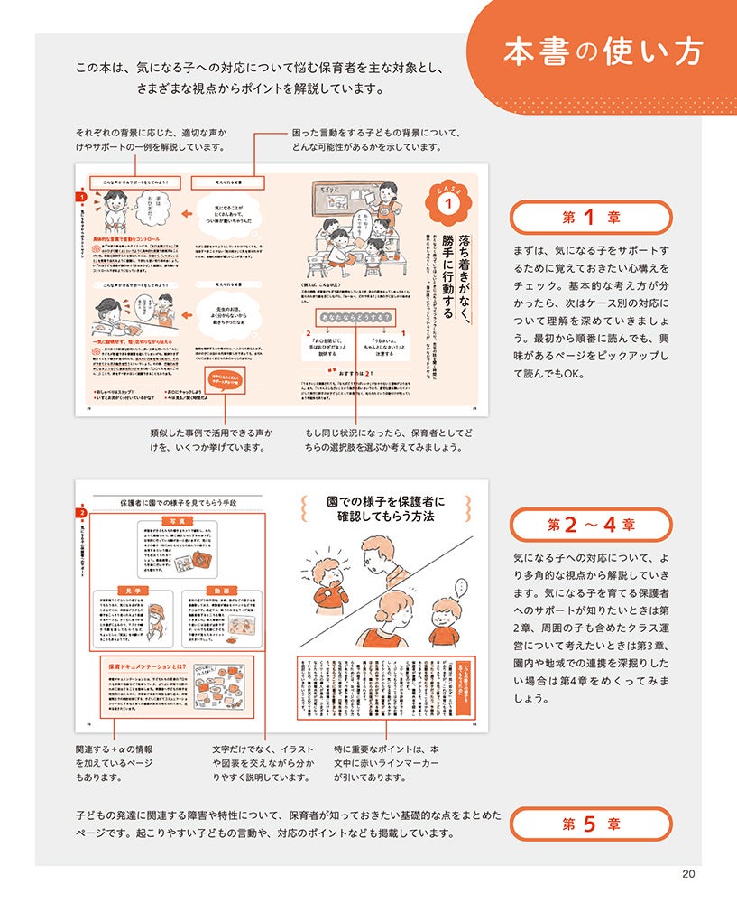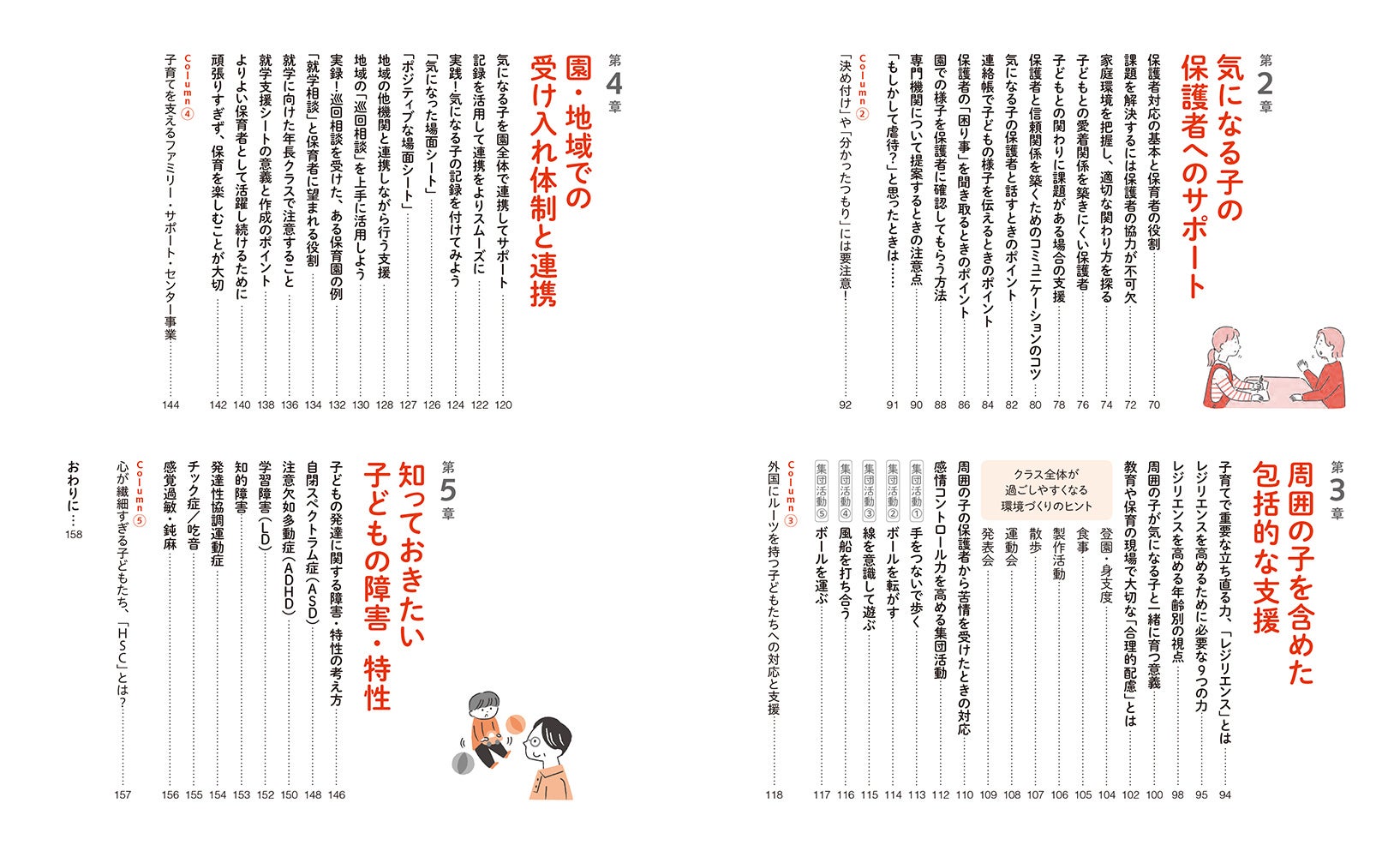 また、「気になる子」の周りの子どもたちにも焦点をあて、周りの子どもたちや親御さんへのフォローや対応策と、クラス全体が過ごしやすくなる環境づくりのアイデアを提案します。